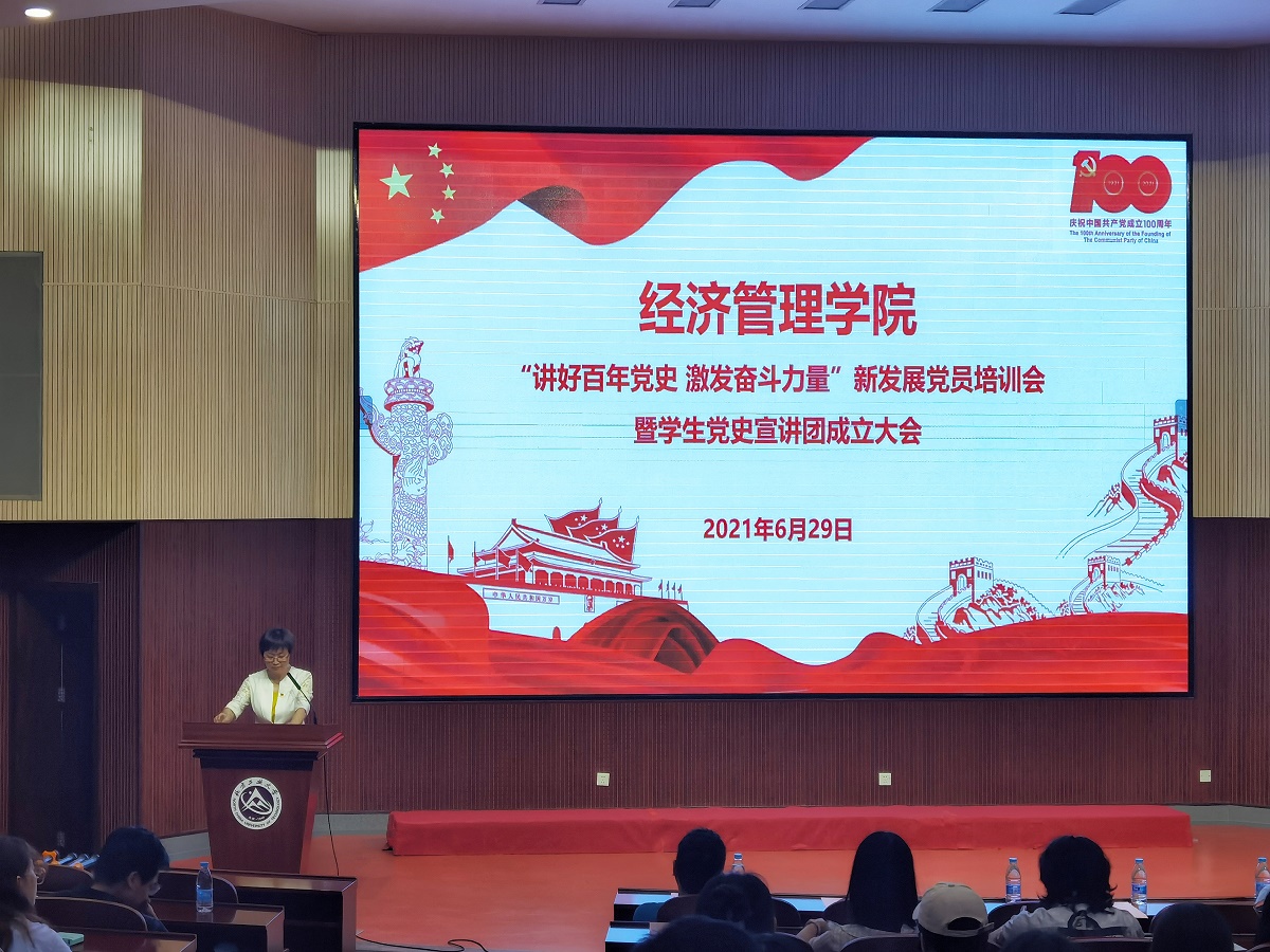 百年征程波澜壮阔,百年初心历久弥坚。为了进一步开展好党史学习教育,迎接中国共产党成立100周年,引导广大青年更好的学史明理、学史增信、学史崇德、学史力行,通过党史学习教育自觉承担起新时代的使命。经济管理学院“讲好百年党史 激发奋斗力量”新发展党员培训会暨学生党史宣讲团成立大会于6月29日晚在文化会堂举行。经济管理学院党委委员、各学生党支部书记、各年级辅导员、新发展党员参加了此次大会,会议由学院党委副书记赵...