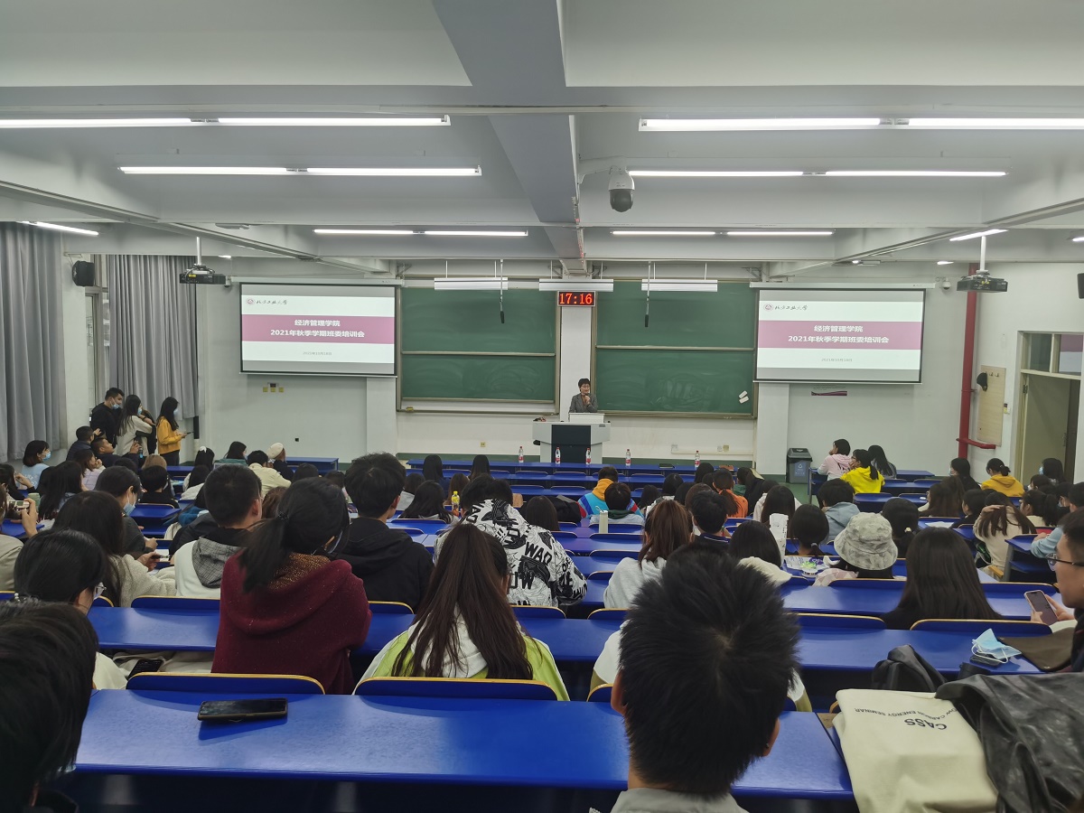 10月18日晚,经济管理学院在浩学楼东304教室组织召开主题为“营造良好学风氛围、强化班级干部职责”学院班委培训会。学院党委副书记赵洁、各年级辅导员以及全院本科生、研究生班委100余人参加了此次会议。会上,赵洁老师分别从营造良好班风、严肃学风考风,提高安全意识、守好安全底线,明确工作职责、提高工作质量三个方面向同学们进行了培训。她要求各位班委要以高度的工作责任心对待每件工作,及时把同学们的意见和建议反馈...