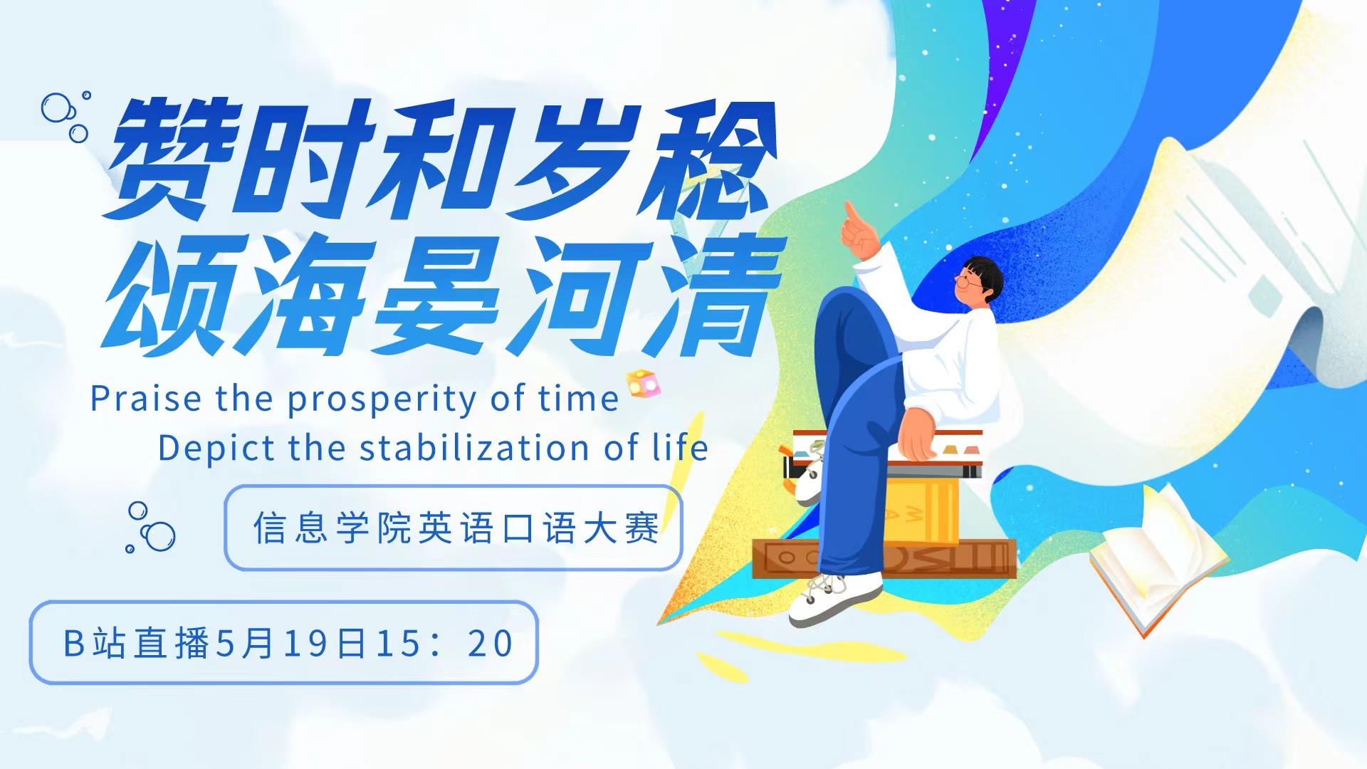 在从严从紧做好疫情防控的背景下,为引导学生保持积极乐观的良好心态,缓解疫情防控期间的焦虑情绪,感知英语魅力,增强语用意识,5月19日下午,信息学院通过线上举办“赞时和岁稔,颂海晏河清”主题英语口语风采大赛,以赛促学、以学促教,帮助学生循序提升英语综合素养。此次大赛由信息学院主办,本科21级年级学生会承办,初赛阶段同学们踊跃参赛提交作品40余份,最终15名同学进入决赛。口语风采大赛决赛采用Bilibili线上直播...