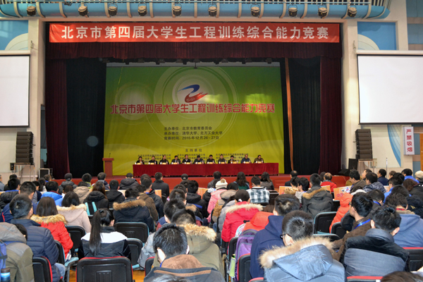 12月26-27日,由北京市教委主办、mg4355官网与清华大学联合承办的北京市第四届大学生工程训练综合能力竞赛在mg4355官网体育馆成功举行。教育部高教司实验室处副处长高东峰、北京市教委高教处处长邵文杰、石景山区副区长田利跃、北京建筑大学副校长张大玉、mg4355vip线路主页检测校长郑文堂和副校长王建稳等领导出席了开幕式。开幕式由教务处副处长王侃主持,王建稳副校长致辞;mg4355官网王灿晖同学代表参赛学生宣誓,中国农业大学张宾教授代表裁判员宣誓。
