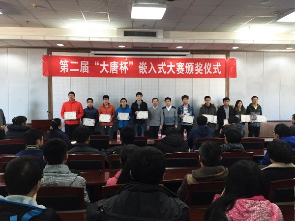 12月16日,mg4355vip线路主页检测第二届“大唐杯”嵌入式设计与开发竞赛颁奖仪式在四教15层报告厅举行。教务处处长王景中、电信学院副院长曹淑琴、党委副书记王伟宾、通信系主任白文乐、大赛指导老师刘红、大唐移动通信学院副院长杨胜、产品总监张磊、产品经理李杨等出席活动并为获奖学生颁奖。会议由王伟宾主持。