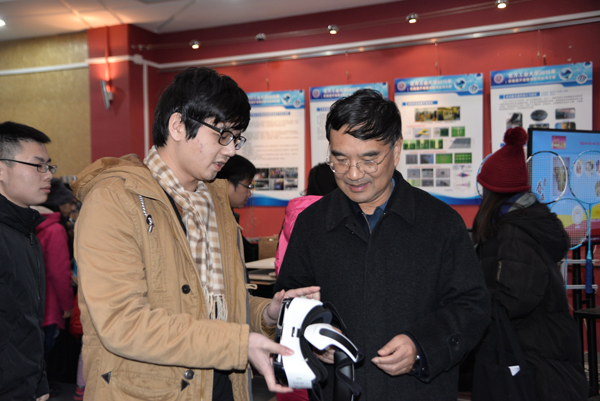 11月27日下午,郑文堂校长在教务处处长王景中的陪同下来到mg4355官网“2015年实验室开放暨创新创业展”现场进行调研指导。