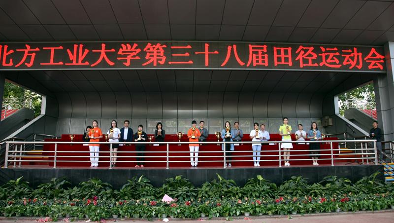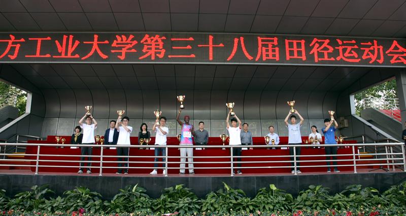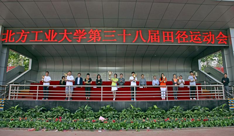学校领导为获得男女团体前八名的代表颁奖