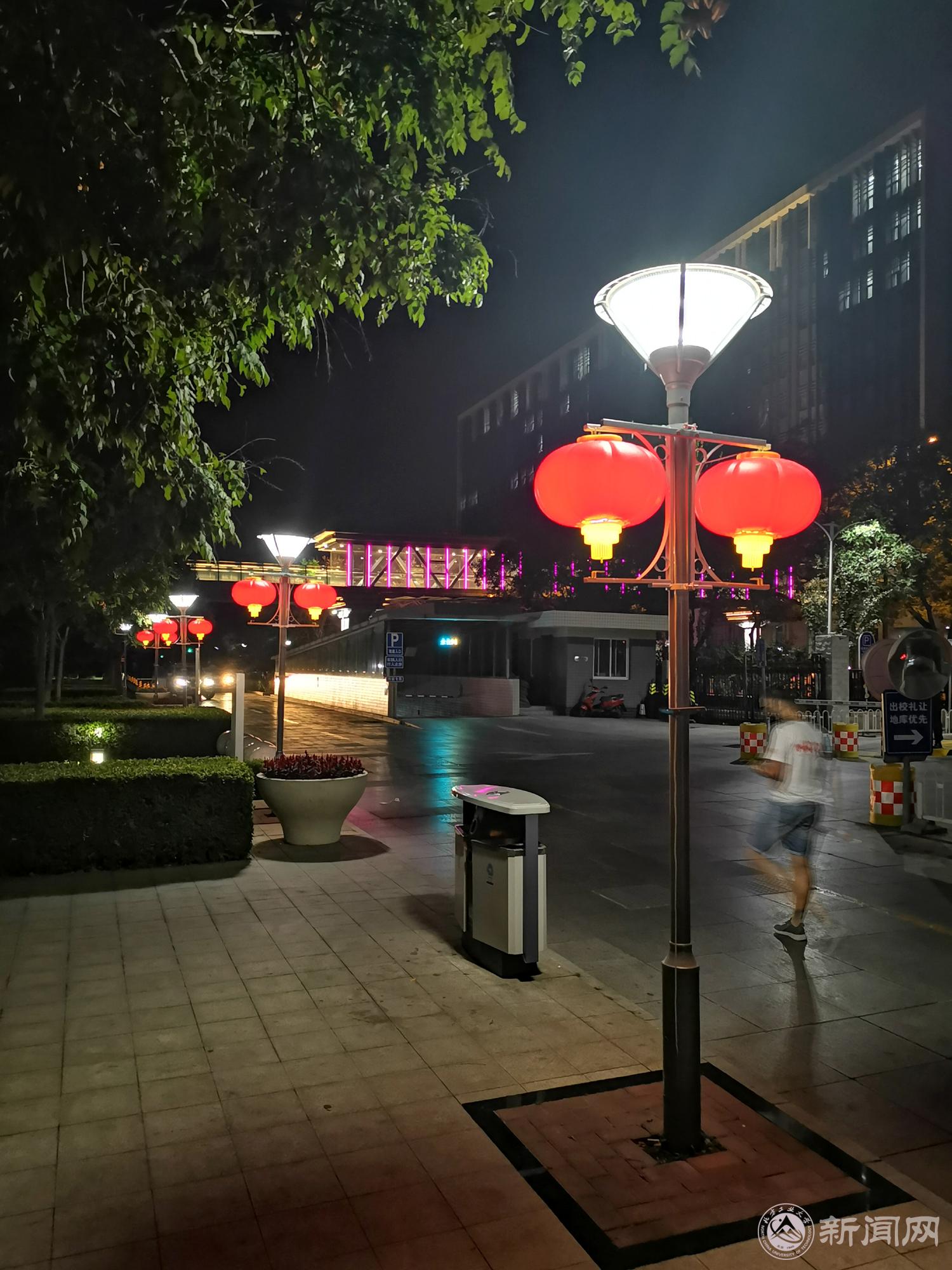校园行道两旁,大红灯笼高高挂起,喜气洋洋。