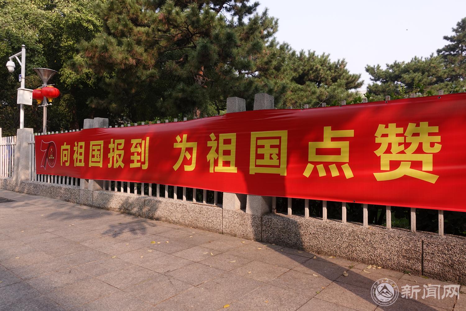 随着新中国成立70周年脚步的日益临近,学校对校园环境进行了精心布置,美丽校园焕然一新,毓秀园里充满了节日的喜庆气氛。
