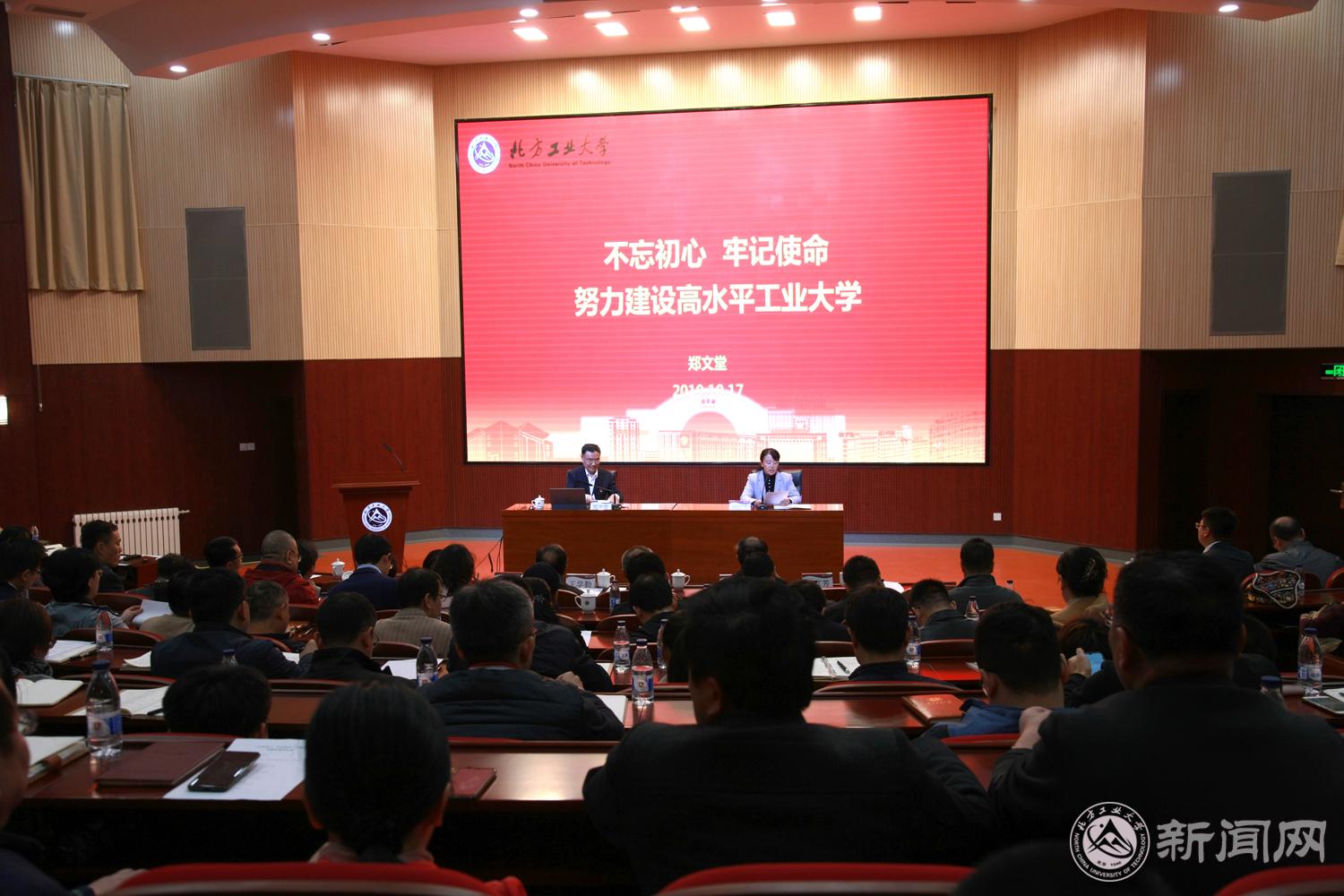 郑文堂书记强调,我们要深入理解初心和使命,担当起新时代赋予的重任。一是要深刻理解初心,坚定践行使命。中国共产党人要永葆“为中国人民谋幸福、为中华民族谋复兴”的初心使命,团结带领全国人民实现从站起来、富起来、强起来的伟大飞跃。北方工大人要始终以“工业报国、工业兴国、工业强国”为己任,为党和国家培养大量德才兼备、全面发展的新时代社会主义建设人才。二是要勇于担当作为,主动干事创业。作为高等教育工作者,我们要全面学习把握习近平总书记关于教育重要论述的科学内涵和精神实质,更好地武装头脑、指导实践、推动工作,为党育人,为国育才;作为北京市属高校,我们要敢于负责、勇于担当、迎难而上、真抓实干,要立足国家战略,立足首都定位,勇于担当首都教育的职责。