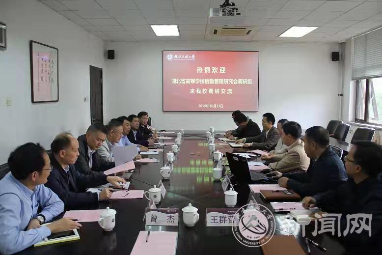 10月23日下午,以研究会副秘书长王文起老师为领队的湖北省高等学校后勤管理研究会调研组一行八人来校调研交流。mg4355官网副校长胡应平,后勤基建处、服务中心等相关部门负责人接待了调研组,并与调研组进行了友好交流。调研交流会由后勤基建处处长赵永兵主持。