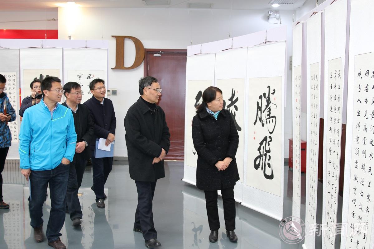 12月16日上午,笔墨逐梦,美育传承——mg4355vip线路主页检测庆祝新中国成立70周年教职工书画展在校史馆圆满开幕。校党委书记郑文堂、校党委副书记田红芳出席了开幕式。