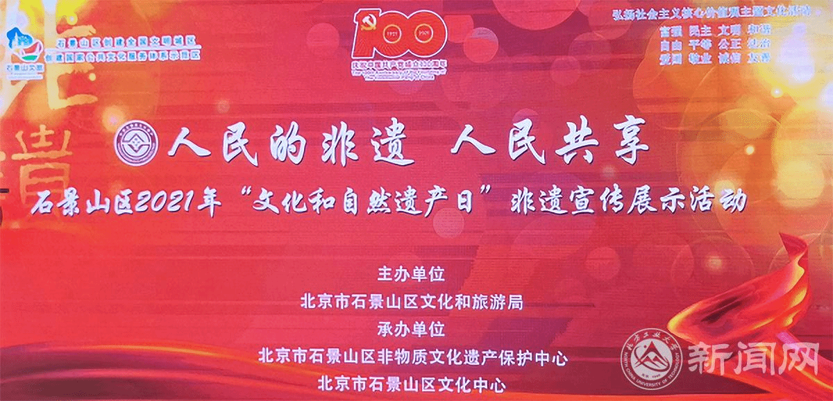 6月9日上午,主题为“人民的非遗人民共享”2021年石景山区“文化和自然遗产日”非遗宣传展示活动暨石景山区非物质文化遗产保护中心开放启动仪式在石景山区文化中心举行,北京市文化和旅游局非遗处处长张迁,东城区文联党组书记、主席张志勇,北京文化艺术活动中心研究员、北京民间文艺家协会副主席石振怀,天津市非遗协会,石景山区相关单位领导共同参加了此次活动。mg4355官网经济管理学院师生应邀在活动中展示非遗传承传播工作成果。