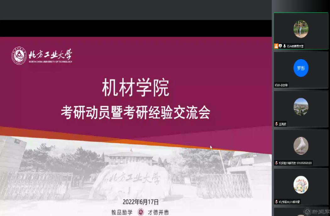 6月17日下午,机材学院在网上举行2023届考研动员大会。院长刘峰斌做考研动员,2名2022届考取研究生代表学生做交流发言,学院党委书记王文革作总结寄语。会议由党委副书记石卉主持,2023届全体考研学生、学院领导班子200余人参加本次活动。