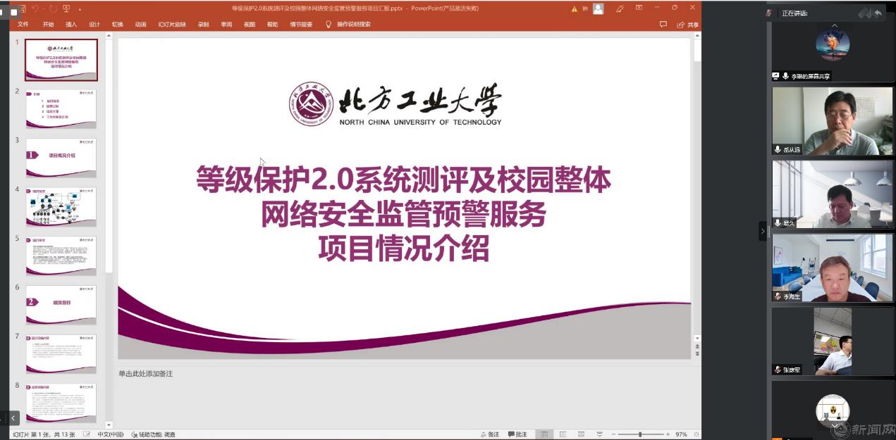 宋威向与会专家介绍了2022年计划建设的等级保护2.0系统测评及校园整体网络安全监管预警服务、敦品楼核心机房升级改造、图书馆有线无线升级改造、分布式融合存储建设和数据资源开放服务5个项目的整体概况。各项目负责人从项目建设可行性、必要性、技术路线、实施方案、绩效目标等方面做了详细汇报。
