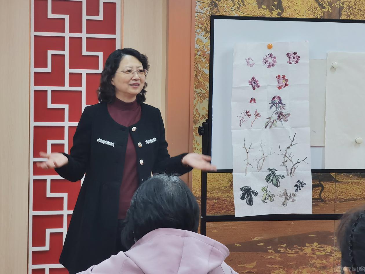 首次培训课上,刘琳担任主讲老师进行写意牡丹技法分享,她从初学者角度出发详细介绍了牡丹的绘画过程,并鼓励大家敢于运用中国传统绘画技巧表达自己的情感,享受绘画带来的乐趣。现场学习气氛热烈,学员们拿起画笔,一边画一边互相传授技巧、交流心得,寥寥数笔就把牡丹画得有几分传神。