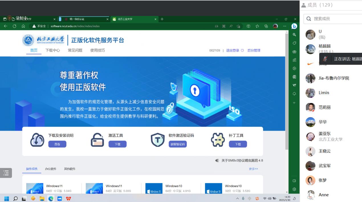 为方便师生了解国家和北京市关于软件正版化的法规、制度和管理方法,充分认识使用正版软件的重要性,更好地发挥学校“正版化软件服务平台”对教学、科研和管理工作的支持作用,3月30日,学校在线召开了软件正版化服务专题培训会。学校相关单位负责人、软件正版化工作联络员等参加了会议。